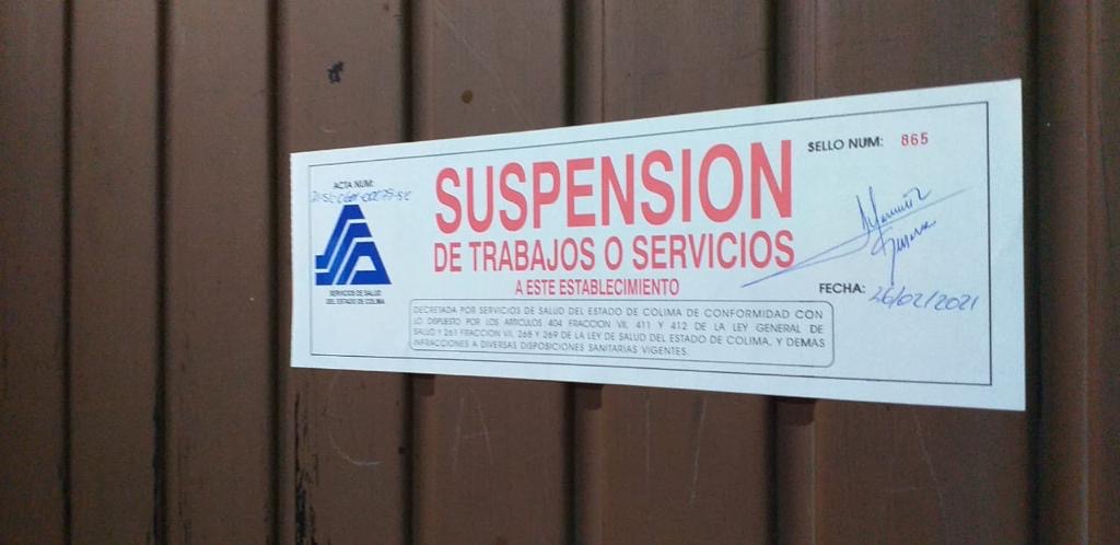 La Coespris señala que la causa de la suspensión, fue el incumplimiento con el protocolo de seguridad en el entorno laboral, exceso de aforo y, por la falta de registro ante el Sirec en uno de ellos.
